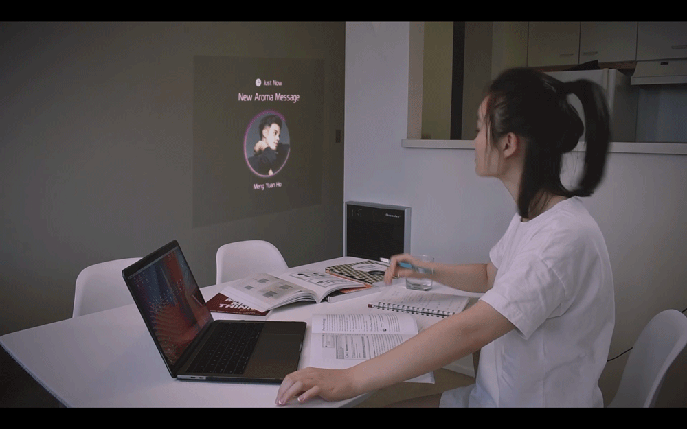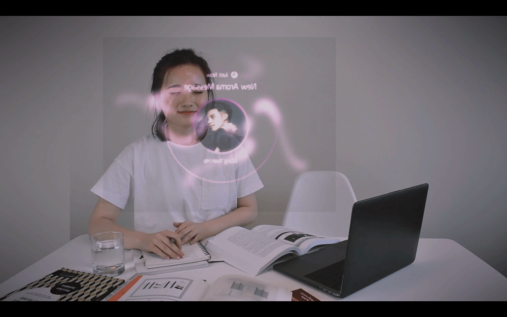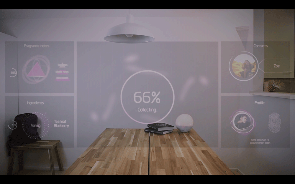 This has been a collaborative project with other students: Cui Lupeng, Meng Yuan Ho, and Yang Sun. The purpose was to ideate a new concept and prototype a futuristic user interface. So we decided to work on the idea of sharing a perfume.