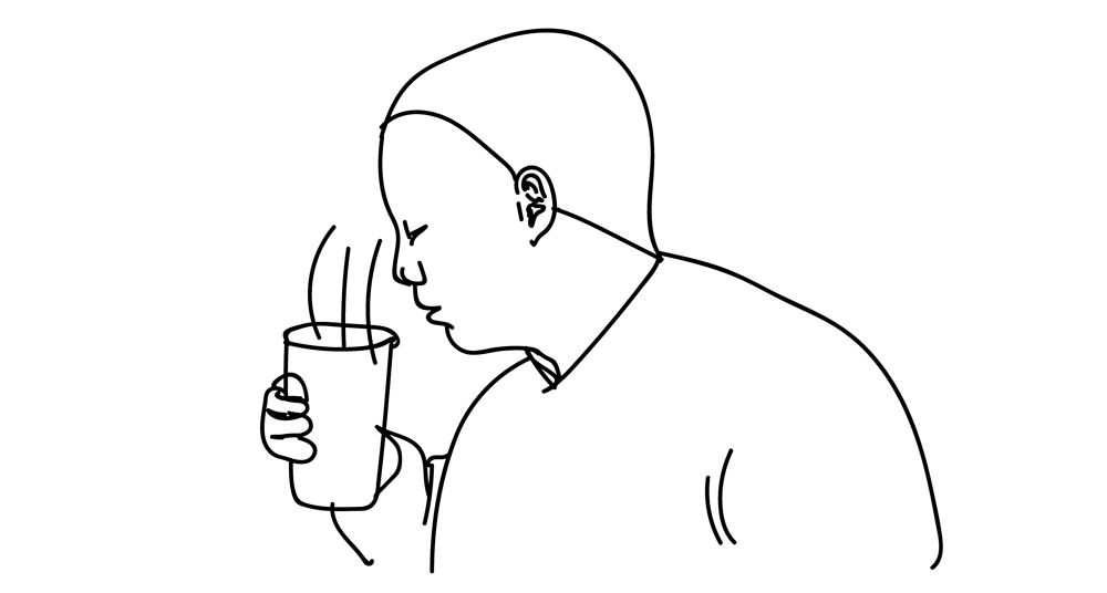 The protagonist smells the perfume of his tea and decide to share the scent with his friend.