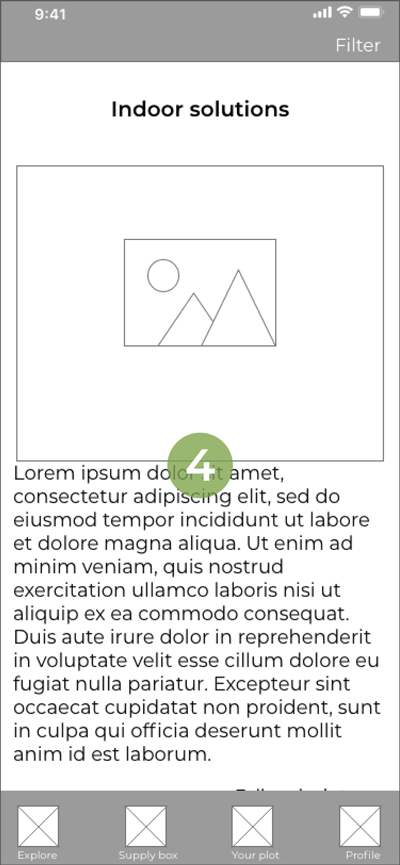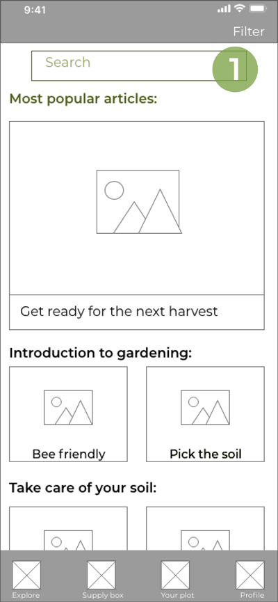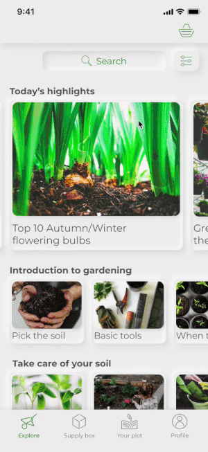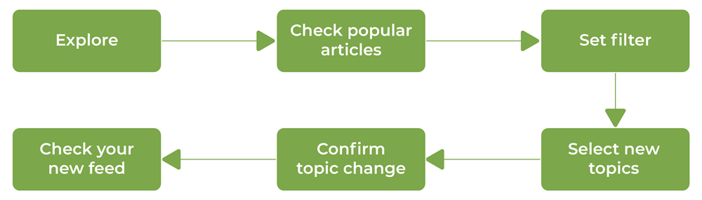 Hannah would like to find out more about gardening in the city, so she would start reading articles on the home page and, after that, change the feed, using the filter, to pick and sort the more suitable options for her and her interests.
