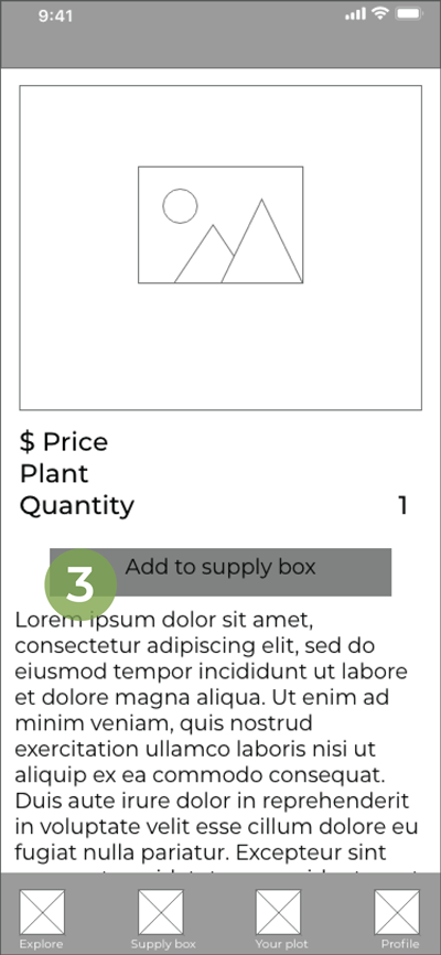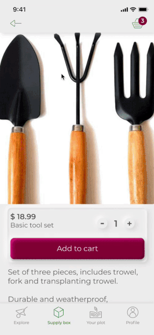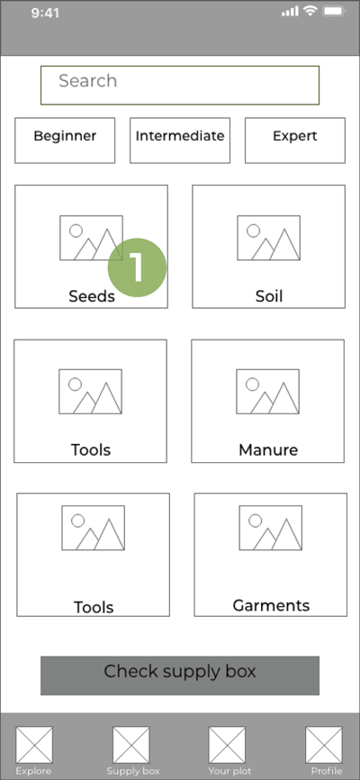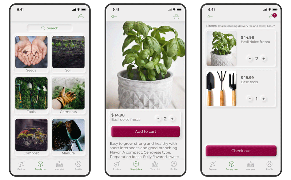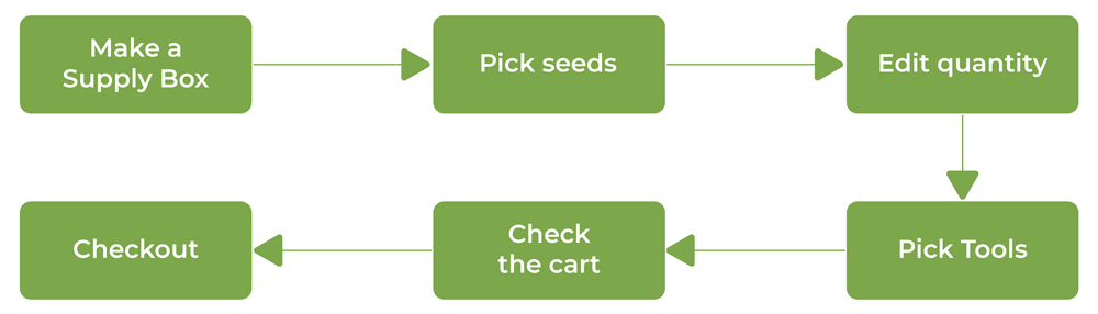 Ross wants to begin his gardener adventure, so he will get ready buying some items, starting with some basil seeds and then some basic tools, creating his own supply box, submitting the order and checking out.
