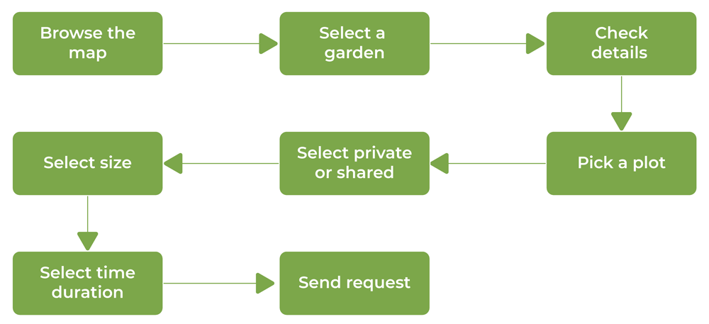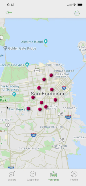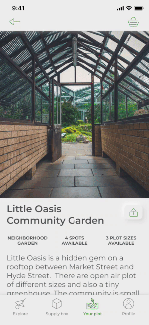 Hannah has to find a new spot to practice her gardening passion in the city, so she will look through the map which options she has and then decides which kind of garden plot she wants to start using, also selecting the time duration.